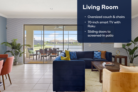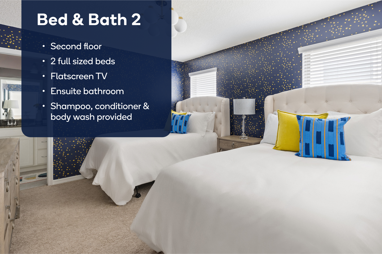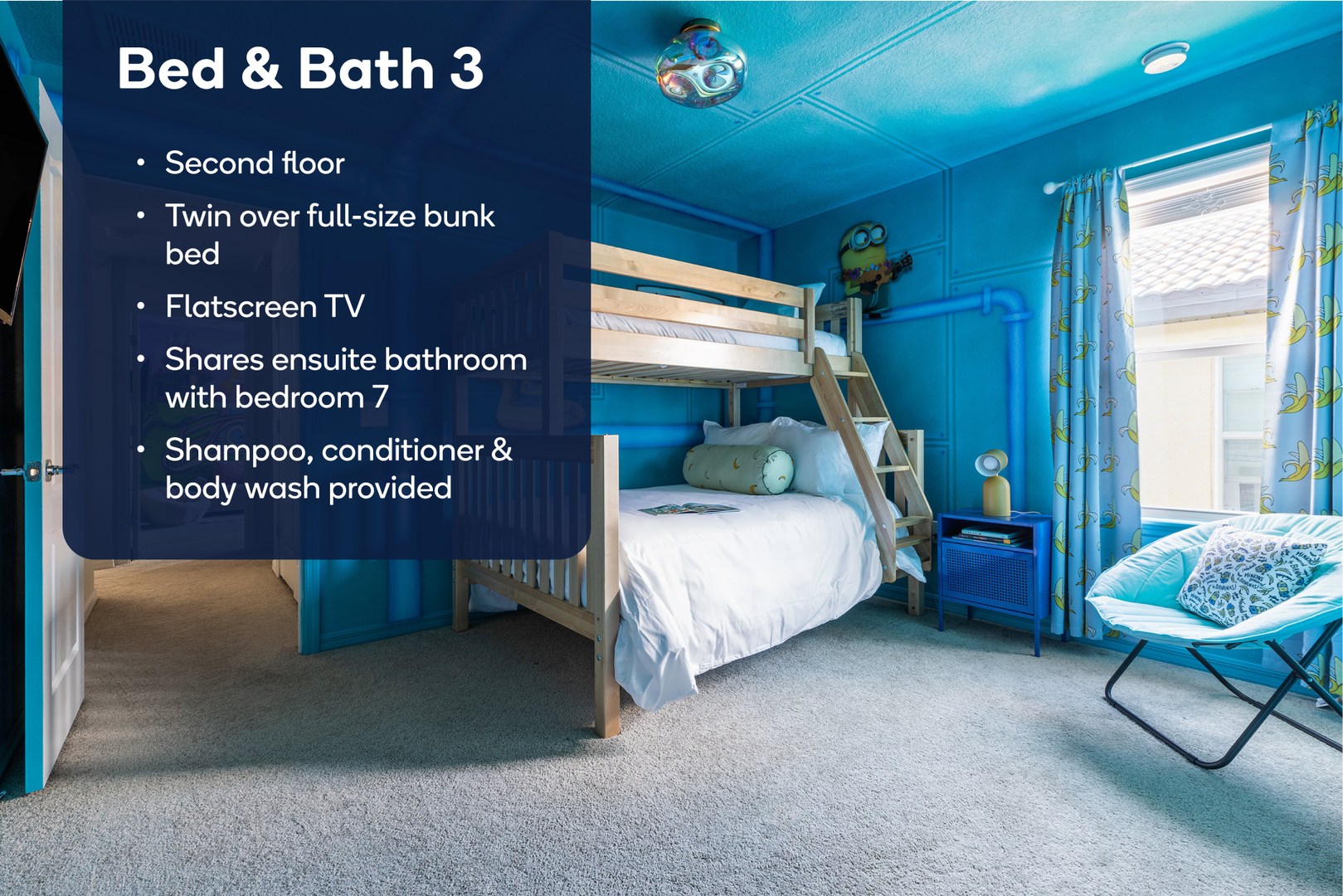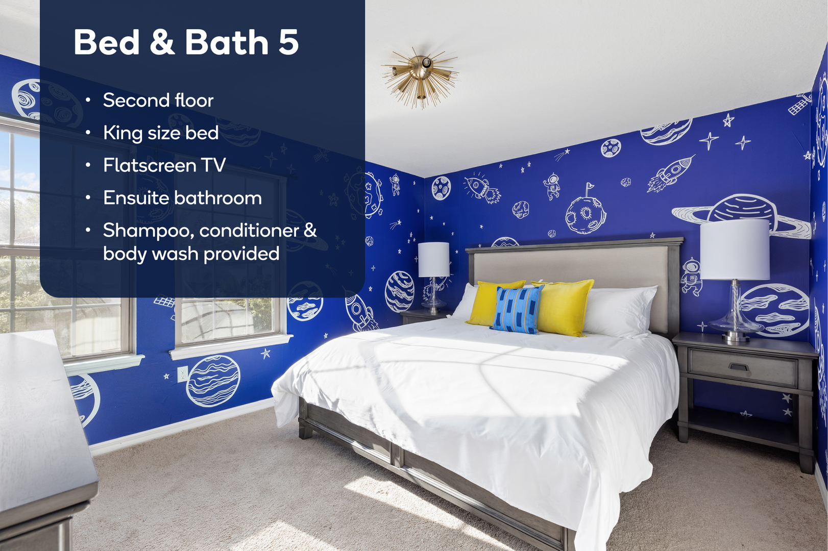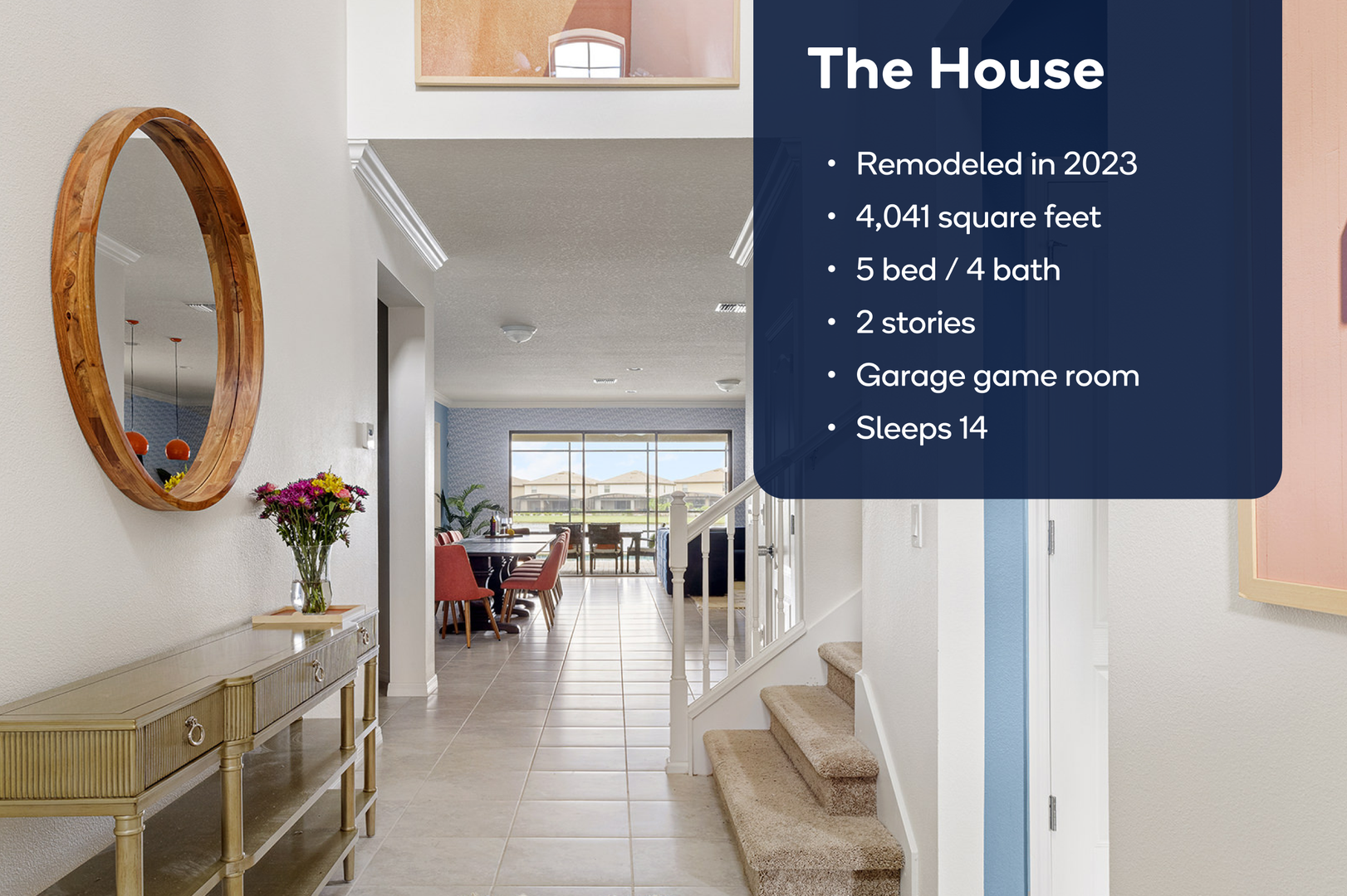 Welcome to Twice-as-Nice, the 9th home in the Overmoon collection. This 5-bedroom, 4-bathroom oasis is located in the Windsor at Westside resort, just a short drive from Orlando’s famous thrills, it can accommodate 14 people, leaving even the biggest travel groups rested and ready for a big adventure – or just a simple day of backyard fun.