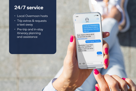 • Warm, personal hospitality. Each Overmoon comes with a local host who is there to support you before, during and after your stay. They’ll call before you come to make any special arrangements, and can solve any issues if you need help mid- or post-stay.