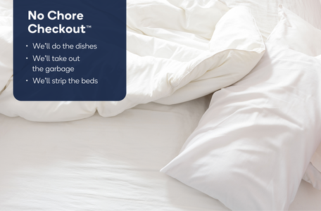 • No Chore Checkout™ We hate the long lists of chores that lots of hosts require. All we ask is that you shut the door securely on your way out – you have enough to take care of while traveling home. Leave the linens, dishes, and garbage to us.