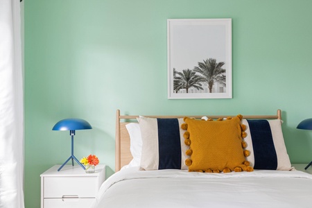 4. It’s where form meets function. This charming bungalow not only offers a colorful, clean aesthetic with professionally designed decor inside and out, but it will host your crew effortlessly with tons of dishes, ample bathroom and laundry supplies, and surprising little extras throughout.